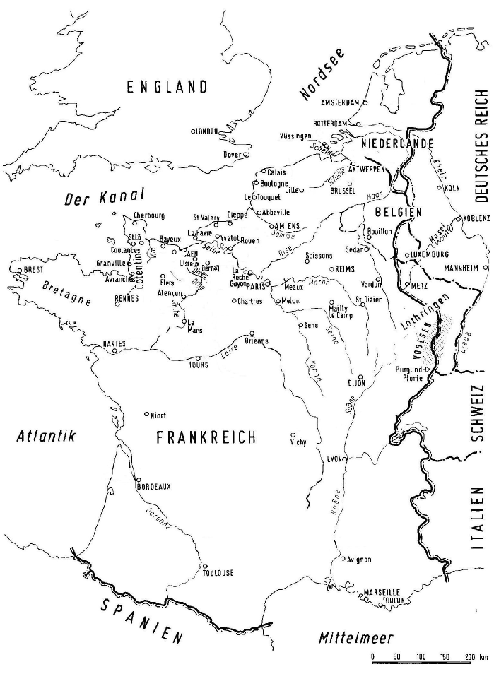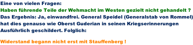 Kernprobleme: alliiertes Luftmonopol, und das die deutschen Panzerverbände tagelang oder sogar wochenlang zurückgehalten wurden, weil man noch lange Wochen eine zweite Landung (die eigentliche Landung) am Pas de Calais erwartete.