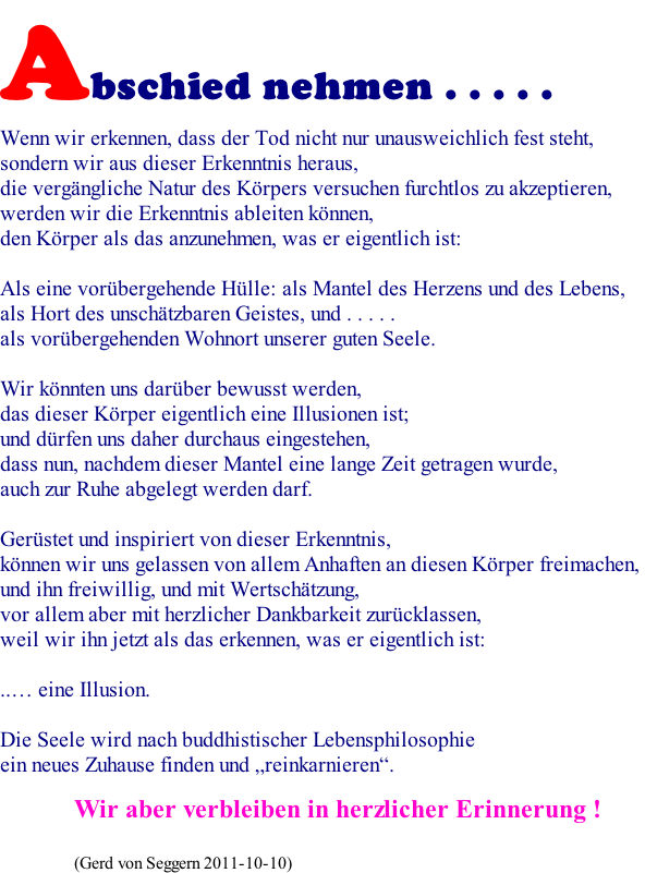wird der Mantel des Lebens abgelegt.