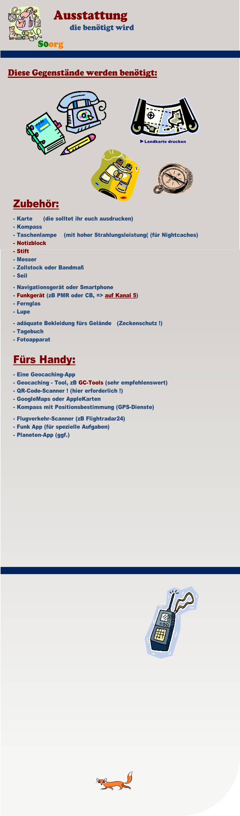 Für die Freaks unter den Cachern wurde eine spezielle Taschenkarte entwickelt. Diese ist für die Fuchjagden aber auch für das Positioning, für die Codierung und vor allem für den Funkverkehr ! unerlässlich bzw. Erforderlich.