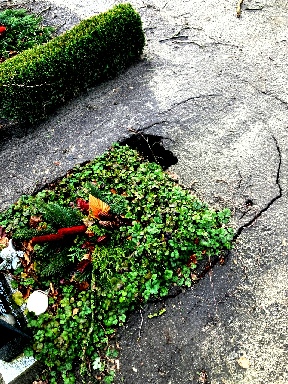 denn das Grab war vom Regen stark