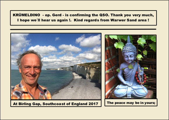 Die Daten zum Eintragen sehen meistens diesem Beispiel sehr ähnlich. Es wird das Datum, die Uhrzeit, und alle Daten rund um den durchgeführten Funkbetrieb handschriftlich eingetragen, bevor die QSL-Karte dann später mit der Post auf den Weg gebracht wird . . . . .