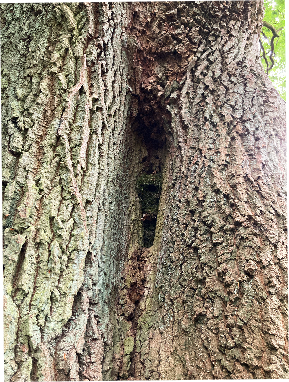 Später jedoch (2020) wuchs das Loch jedoch wieder zu, und durch die dadurch entstandene Höhle, bietet sie heute einen idealen Platz für den Nestbau eines Baumläufer-